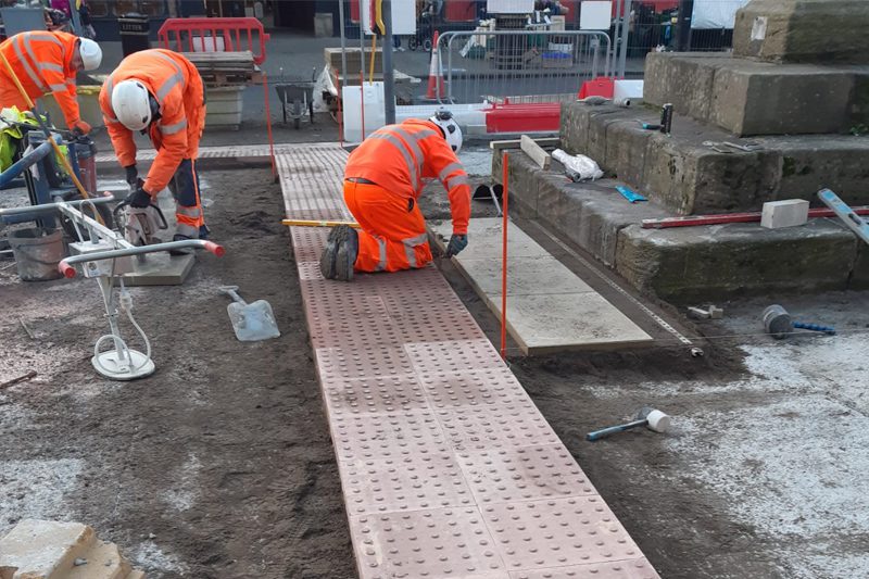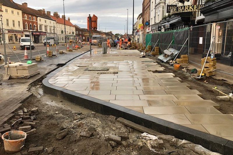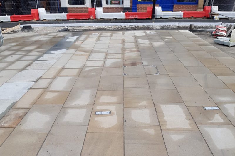 The works undertaken allowed for the full construction of the high street within an operational public environment, with natural modular paving installed using specialist products from Instamac.